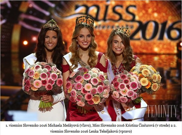 game Zverejnené 30. Apríl, 2016 Zverejnené 30. Apríl, 2016 bez nejakých extra fanfár - alebo len nepozerám tie správne programy - som dnes len ako správičku kdesi vedľa zistila, že včera zasa volili na jojke ďalšiu zo slovenských missiek :) teraz som ale musela pozrieť, aby som to napísala správne - toto bola Miss Slovensko 2016,a toto je víťazná trojica a samotná misska, 18 ročná Kristína Činčurová z Lučenca - tak hľa, dámy a páni, ako sa vám páči? :) http://feminity.zoznam.sk/c/897612/novou-kralovnou-krasy-sa-stala-18-rocna-kristina-cincurova-nadherny-usmev-a-dokonala-postava , http://www.topky.sk/cl/100313/1544255/Miss-Slovensko-2016--Trapas-na-uvod----A-vitazkou-opat-blondinka-