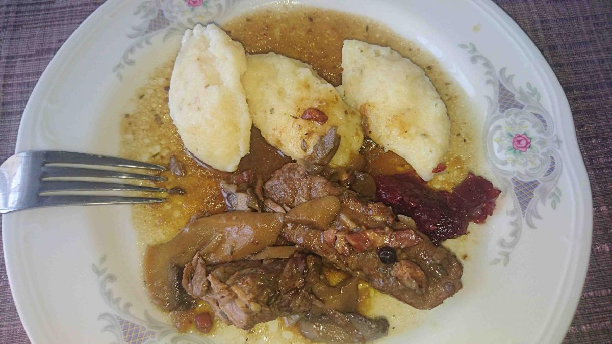 Hellé Zverejnené 10. November, 2018 Zverejnené 10. November, 2018 Dnes..jelenie medailonky na vine s brusnicami a krupicovymi knedlickami a kukavovy kolac..piekla som vcera aj jablkovy ale zjedli sme ho na ranajky.. Viem, ze to nie je take dobre ako jedlo z pumpy..ale ja nie som minimalista:-) 1