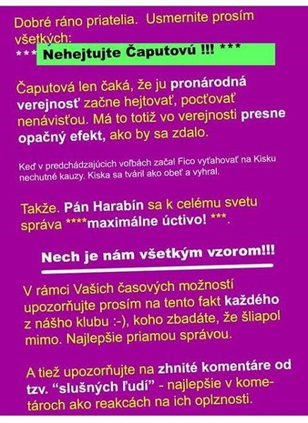 toto sú pokyny admina stránky "Volím Harabina" pre svoje duchom obmedzené členstvo,