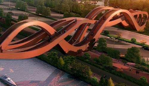 secretka Zverejnené 10. Marec, 2014 Zverejnené 10. Marec, 2014 Holandské architektonické štúdio Next Architects vyhralo medzinárodnú súťaž na vyprojektovanie mosta pre peších cez plavebný kanál Meixi Lake v čínskom meste Changsha. Oceľový most tehlovej farby s dĺžkou 150 m a výškou 24 m nad hladinou má svojou prepletenosťou pripomínať pruh papiera v tvare pretočenej osmičky, ktorému sa hovorí Möbiova páska; na druhej strane podľa holandských architektov asociuje rozvlnené lano s čínskym uzlom, ktorý býva tradičnou súčasťou ľudového umenia tejto ázijskej krajiny.Unikátny trojprúdový most pre peších bude ponúkať niekoľko trás rôznych výškových úrovní. Zdroj: 21.století 3http://www.novinky.cz/bydleni/tipy-a-trendy/319307-v-cine-postavi-vyjimecny-triproudovy-most-pro-pesi.htmlhttp://www.designmagazin.cz/architektura/45573-next-architects-postavi-v-cine-vlnity-most-pro-pesi.htmlMöbiova páskahttp://cs.wikipedia.org/wiki/M%C3%B6biova_p%C3%A1ska 1