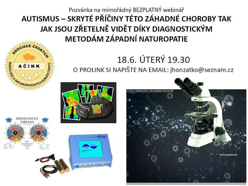 jhonzatko Zverejnené 5. Jún, 2013 Zverejnené 5. Jún, 2013 Dobrý den,jsem rodič autistického syna a rád bych Vás touto cestou pozval na webinář o možných příčinách autismu.Ve webináři se dozvíte následující informace: - Příčiny vzniku autismu z pohledu naturopata- Jak detekovat příčiny autismu naturopatickými screeningovými metodami- Naturopatické detoxikace příčin autismu- Výsledky těchto technik u autistických dětí S pozdravem JH.
