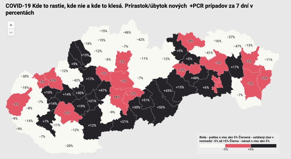 mame strop testov,   ale podrobnejsi regionalny pohlad hovori ze niekde to uz stagnuje a niekde rastie.  Celkovo stupame,  ale dobra sprava je ze v nemocniciach to ide pomaly hore a sme daleko od zahltenia.