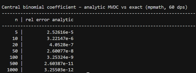 robopol Zverejnené 9. Júl, 2025 Autor Zverejnené 9. Júl, 2025 skusil som to aj na binom_analytic.py a dosahuje to tiez vyznamnu presnost, tiez sa daju pouzit Bernouliho čísla, alebo ich odvodeniny. Takze ak nehladám štatistické koeficienty ale ich dam presne vie to aproximovat lubovolne funkcie tak ako metoda popisuje, v pdf publikacii mas všetko rozpisane ako to funguje. na rozdiel od tvojho prístupu viem dalsie cleny rýchlo pridat pre este lepsiu presnost pre ten faktorial, ty by si sa musel s tym trapit viac