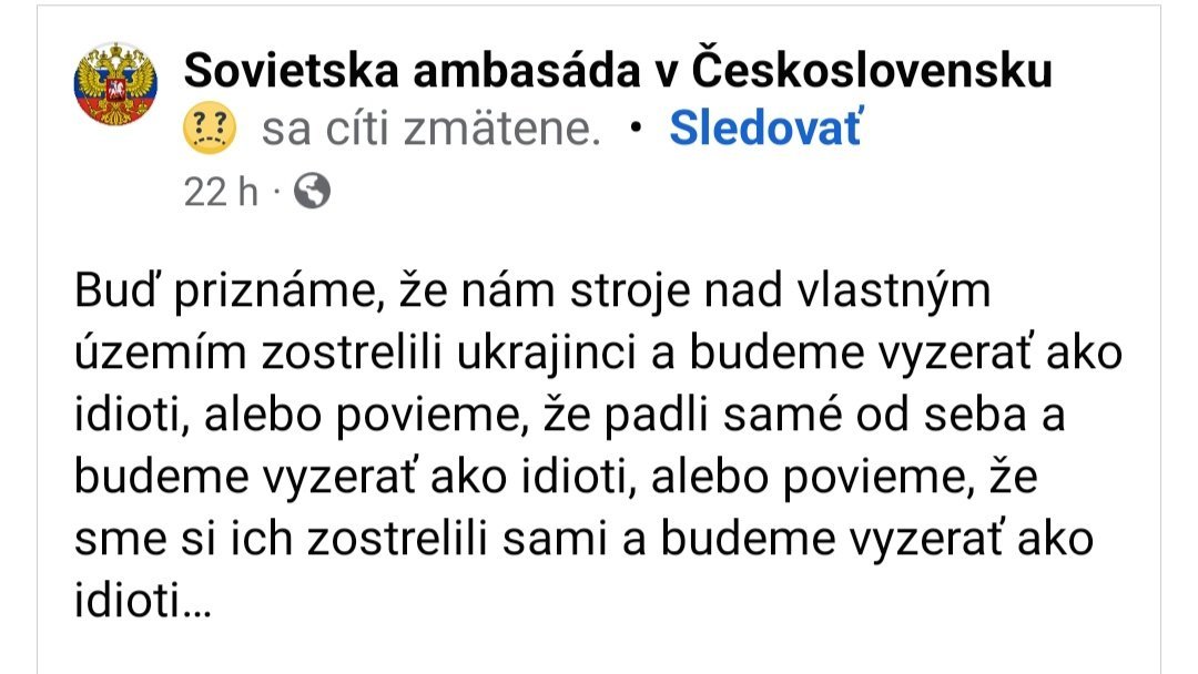 Ja už ani neriešim tých dezolátov. Evidentne majú dostatok času sa zapodievať každou krajinou. Nuž keď inú zábavu nemajú, tak nech sa bavia. Zrejme aj to je odpoveď na to, prečo drvivá väčšina týchto pošukov nemá poriadne vzdelanie, veria ficovym kecom, ďalej ako na robotníka to nedotiahli, za všetkým vidia sprisahanie a kričia že Rusko chce mier. Toľko vecí majú spoločných, že náhoda to nebude. A koľko mindrákov musia mať!
