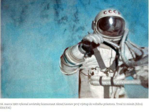 game Zverejnené 11. Október, 2019 Zverejnené 11. Október, 2019 pripomeňme si:dnes zomrel vo veku 85 rokov po dlhej chorobe Alexej Archipovič Leonov, prvý človek, ktorý v roku 1965 vystúpil z kozmickej lode do vesmíru.https://tech.sme.sk/c/22234181/ako-prvy-clovek-vystupil-do-kozmu-zomrel-alexej-leonov.html